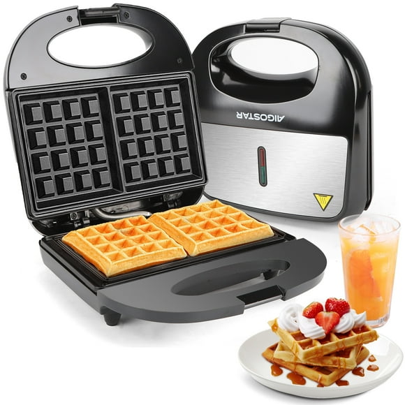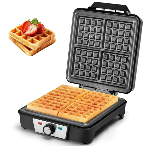 Aigostar Wafflera Eléctrica 1200W, Placa Grande de 4 Porciones, Temperatura Ajustable, Doble Luz Indicadora, Placa Antiadherente, Color NegroWaflera Eléctrica Antiadherente 750w Para 2 Rebanadas