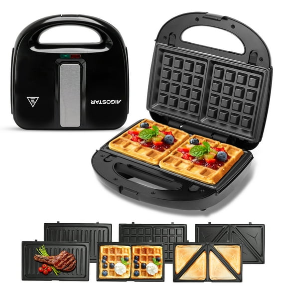 Sandwichera Electrica Waflera 3 En1 Antiadherente NegroAigostar Waflera Eléctrica, 1200W, Antiadherente, 4 Rebanadas Hacer Desayunos, Acero Inoxidable, Temperatura Regulable e Indicador LED, Negro