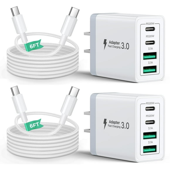 Cargador de pared USB C Aiminu, 40 W, 4 puertos PD Power Delivery, paquete de 2Bloque de cargador USB C Aiminu de 40 W, 4 puertos con cable USB-C de 6 pies, paquete de 2