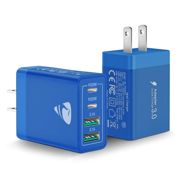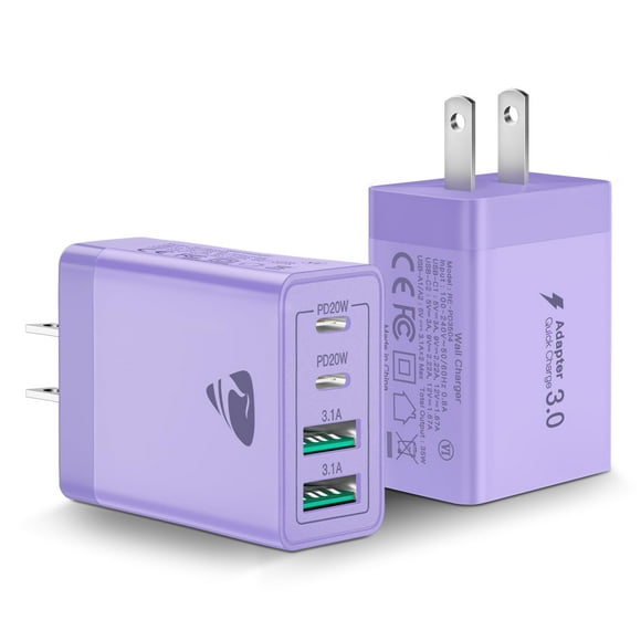 Cargador de pared USB C Aiminu, 40 W, 4 puertos PD Power Delivery, paquete de 2