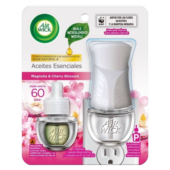 Difusor eléctrico Air Wick y repuesto magnolia y cherry blossom 21 ml