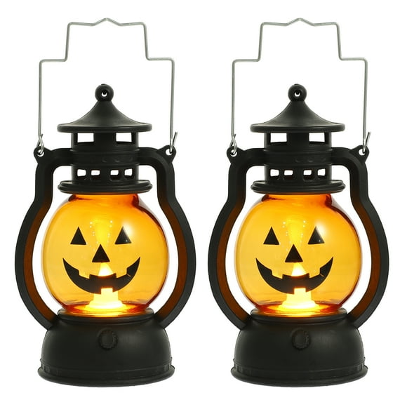 2pcs creative halloween luces calabaza luces grandes luces de cara sin bateríaLuces de calabaza de Halloween con mango Decoración de Halloween Luz decorativa de luz decorativa