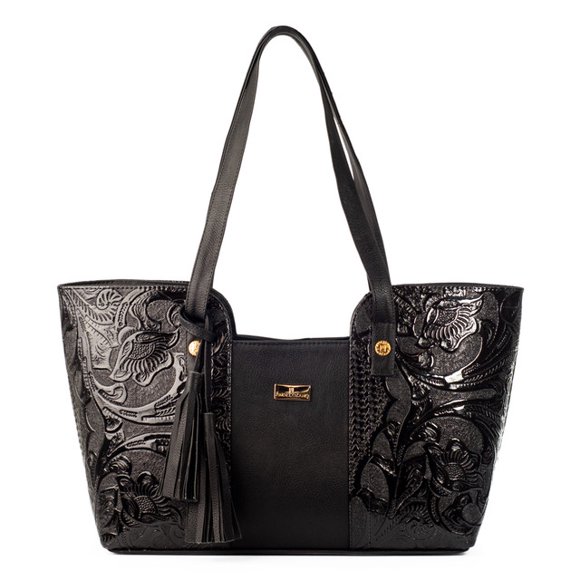 Bolso de Dama AngeLozano De Piel Sintetico Charol con Cincelado Modelo Mazatlan NegroBolso de Dama AngeLozano Crossbody