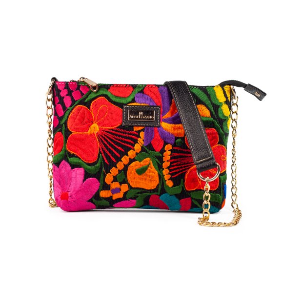 Bolso de dama AngeLozano Diana tipo Tote de Mezclilla con Telar FloresBolso Para Dama AngeLozano Modelo Arena Negro Telar