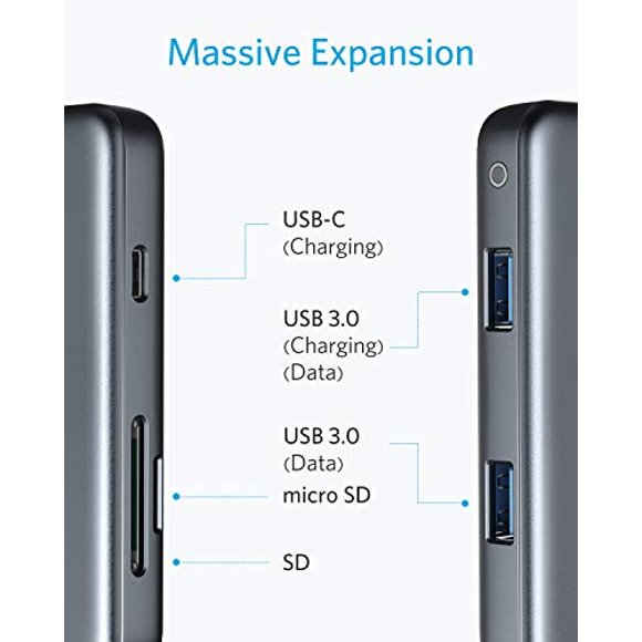 Hub USB C Anker 7 en 1 con alimentación 4K HDMI de 60 W para MacBookHub de datos USB 3.0 Anker de 4 puertos con velocidad de transferencia de 5 Gbps