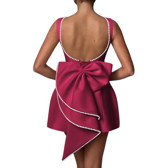 Vestido de fiesta Aosadin con lazo en la espalda satinada fucsia para mujerVestido de cóctel Aosadin Mini Prom para mujer, rosa rubor, 20 W