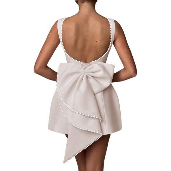Vestido de cóctel Aosadin Satin A Line Mini Ivory para mujerVestido de fiesta Aosadin con lazo en la espalda satinada fucsia para mujer