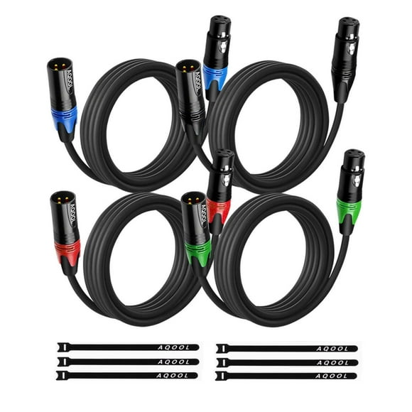 Cables XLR AQOOL de 10 pies, paquete de 4 unidades, macho a hembra, para estudio de grabación
