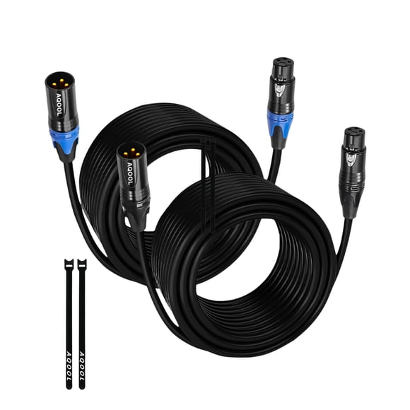 Cable de micrófono XLR Cables AQOOL de 3 pies, paquete de 4 unidades, macho a hembraCable de micrófono XLR Cables AQOOL de 25 pies, paquete de 2 unidades, macho a hembra