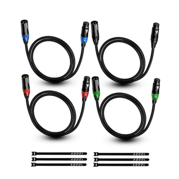 Cables XLR AQOOL de 10 pies, paquete de 4 unidades, macho a hembra, para estudio de grabaciónCables XLR AQOOL, 2 paquetes de 2 paquetes, cables de micrófono balanceados