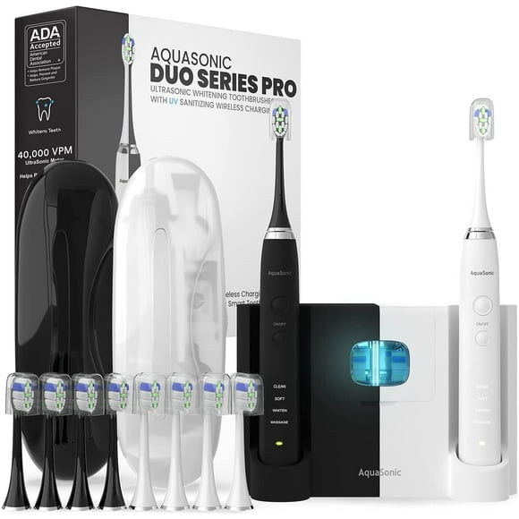 Aquasonic Duo - Cepillos de dientes eléctricos con carga inalámbrica de 40.000 VPM ultrablanqueadores de doble mango - 3 modos con temporizadores inteligentes - 10 cabezales de cepillo Dupont y 2 estu644.8438 de 5 estrellas. 64 reseñas