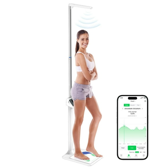 Báscula médica digital Arboleaf, compatible con FSA y HSA, ultrasónica, para altura y peso, analizador inteligente de composición corporal para gimnasio y hogar, 5-220 kg, 1,93 m, medición de grasa coBáscula de baño Bluetooth de peso digital inteligente Arboleaf