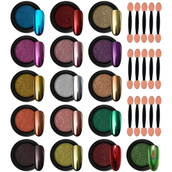 Polvo cromado para uñas Nail Art Artdone, 16 tarros, color plateado y doradoAvailable for Envío internacionalEnvío internacional