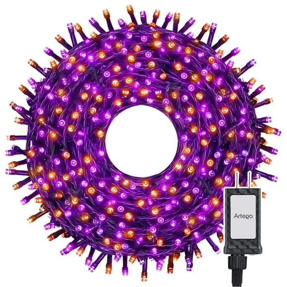 Luces serie 200 led color luz naranja morado verde cable negro Artego interior exterior Decoración Halloween día de muertos LED string lights waterproof 8 modos uso temporizadorLuces Serie Halloween Día De Muertos 200 Led String Lights Luces Naranja/morado - Cable Negro Cuenta Con Conector Eléctrico 8 Modos De Uso Con Temporizador Artego Decoración Halloween