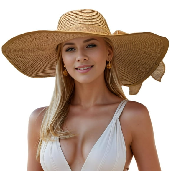 Sombrero de playa Askljeby de ala ancha de gran tamaño para mujerFloppy Big Beach Sombreros de Paja para Mujer Plegable Verano ala Ancha Sombrero para el Sol Plegable Sombrero de Paja de Viaje para Mujer Sombrero Fedora