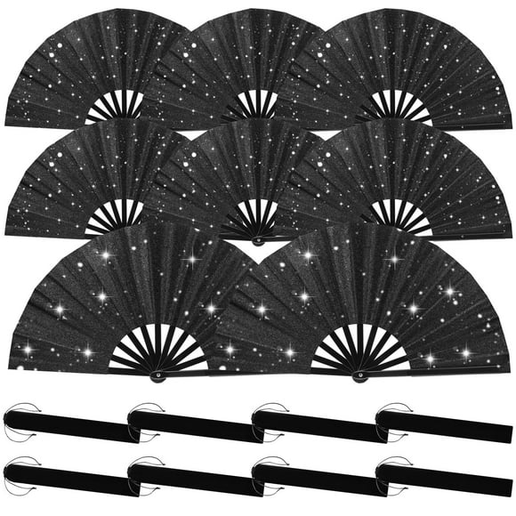 Abanico plegable ATTRACME negro con purpurina de 33 cm con fundas (paquete de 8)Available for Envío internacionalEnvío internacional