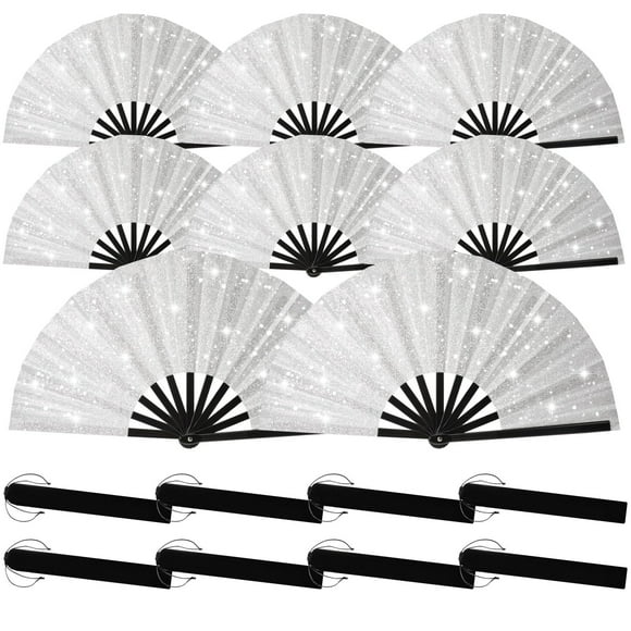 Abanicos plegables ATTRACME con purpurina plateados con fundas, paquete de 8Available for Envío internacionalEnvío internacional