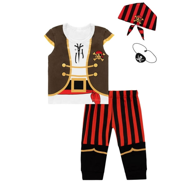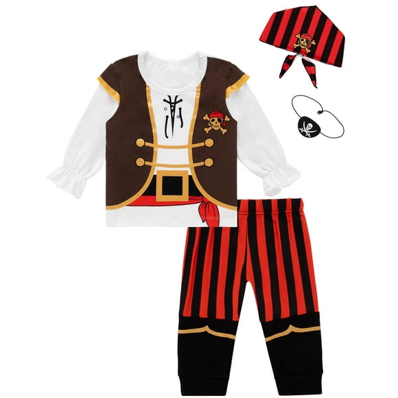 Conjunto de disfraz de pirata para niños pequeños, manga larga, con pañuelo en la cabeza