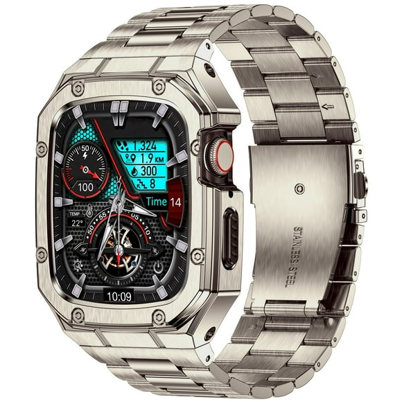 Correa de reloj con funda BAITEYOU de acero inoxidable para Apple de 46 mmCorrea de reloj BAITEYOU de acero inoxidable con funda para Apple Watch