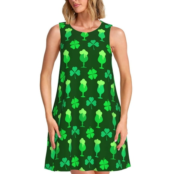 Balery leaves and glasses of beer for St. Patrick's Day Vestidos de verano para mujer con estampado: vestido holgado sin mangas, vestido playero informal y cómodo para días calurosos.