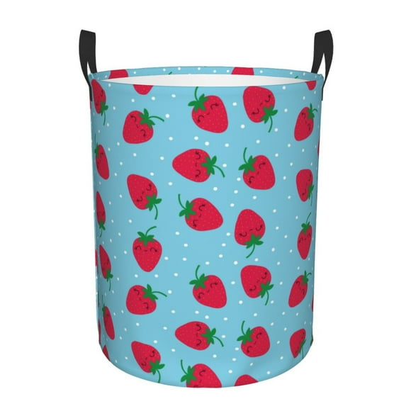 Balery Strawberries Cesta de ropa redonda con asas, impermeable, independiente, para ropa, juguetes, dormitorio y familia-Medium