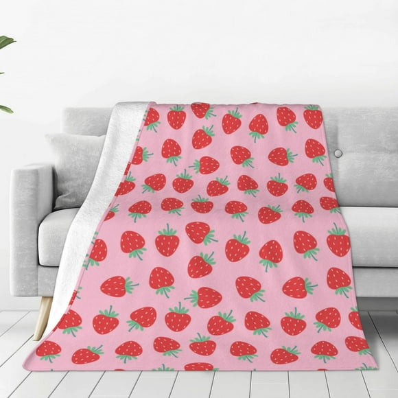 Balery Hand Drawn Strawberry Manta de Felpa Suave y Acogedora – Cobija de Franela Aterciopelada para Cama, Lavable y Cálida para Sofá, Mascotas, Transpirable-40"x30"