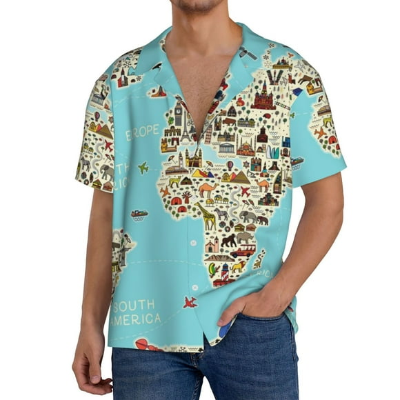Balery World Map With Landmarks Camisa Casual de Manga Corta con Botones para Hombre, Texturizada, Estilo Cubano, para Playa, Verano-X-LargeBalery Patriotic Boxing Bear Art Body de cuello redondo de manga corta para mujer Tops de manga corta Tops básicos-Medium