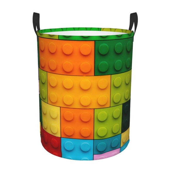 Balery Colorful Building Blocks A Cesta de ropa redonda con asas, impermeable, independiente, para ropa, juguetes, dormitorio y familia-Small
