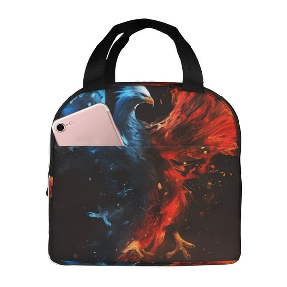 Balery Red And Blue Fire Bird Bolsa de Almuerzo Aislada – Caja de Almuerzo con Papel de Aluminio Grueso, Mantiene la Comida Fresca por 4 Horas