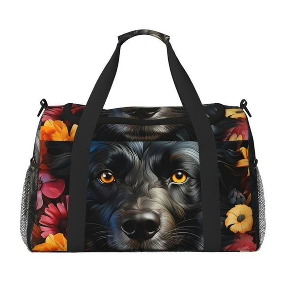 Balery Colorful Floral Black Dog Bolsa de Gimnasio para Mujeres, Bolsa de Viaje con Bolsillo Húmedo, Bolsa de Fin de Semana para Mujeres, Bolsa de Viaje Resistente al AguaBalery Vintage Husky Dog Mochila Cinturón para Mujeres y Hombres, Bolsa de Cintura Impermeable de Doble Capa con Correa