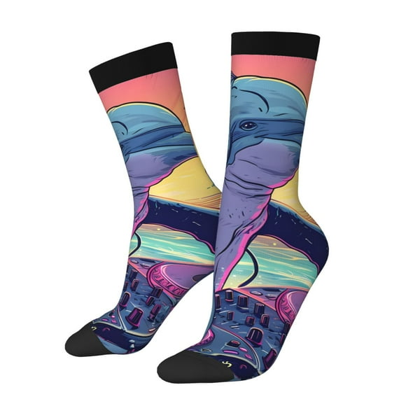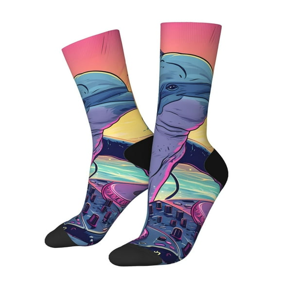 Balery Hip-Hop DJ Dolphin Calcetas Largas con Estampado para Hombre y Mujer – Suaves y Transpirables, Talla Única (US 5-11)