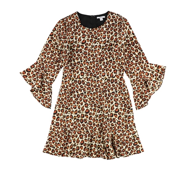bar III Vestido con Volantes y Manga Campana para Mujer, Marrón, 4Vestido evasé bar III con apliques de encaje para mujer negro mediano