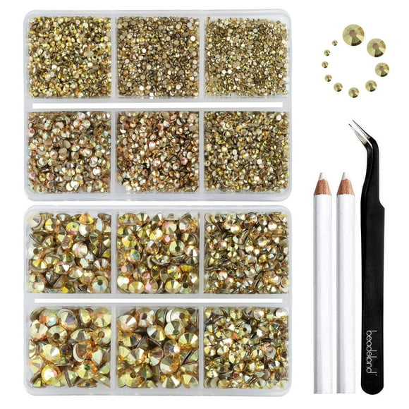 Rhinestone Nail Gems Beadsland 8300 unidades con lápiz de cera y pinzasJuego de diamantes de imitación para decoración de uñas Beadsland Champagne, 2500 piezas con herrami