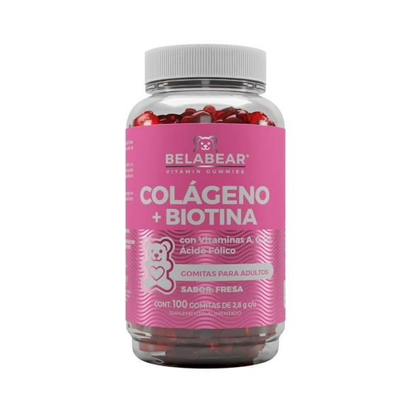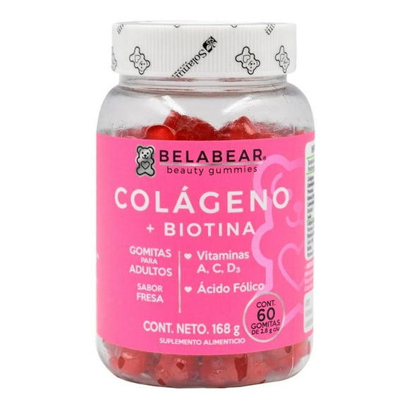 Suplemento alimenticio Belabear colágeno más biotina sabor fresa 60 pzas de 2.8 g c/uSuplemento alimenticio Belabear ácido hialurónico 60 gomitas 168 g