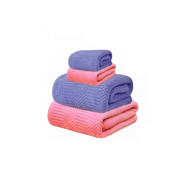 4 Pzs Juego Toalla Baño, lana Coral Suave De Alta Densidad rosa/morado"4pcs Juego De Toallas Baño Completo Grande Suaves 140×70 Cm Belug Gris Beige y Rosa "