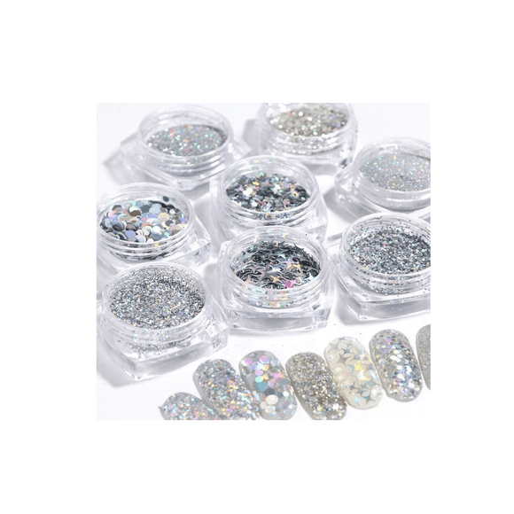 Juego De Purpurina Lentejuelas 8 Cajas Holográficas BELUGDecoración Strass De Uñas Kit 9 Cajas Gemas Diamantes