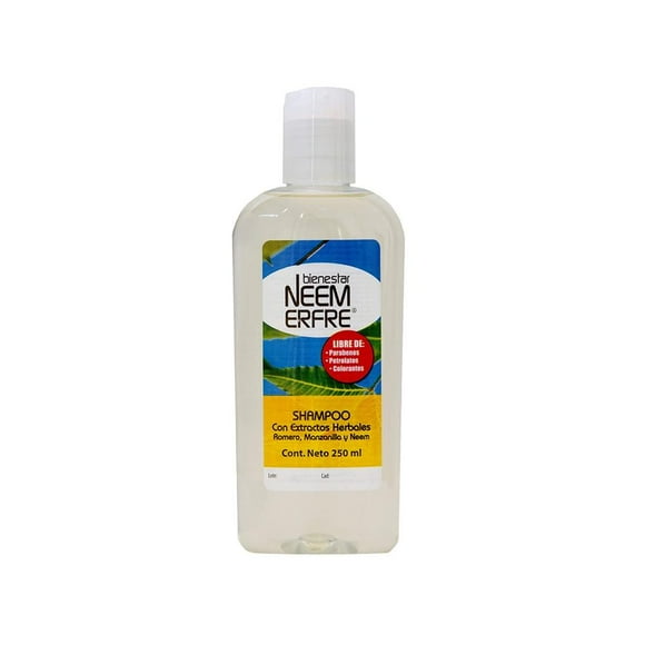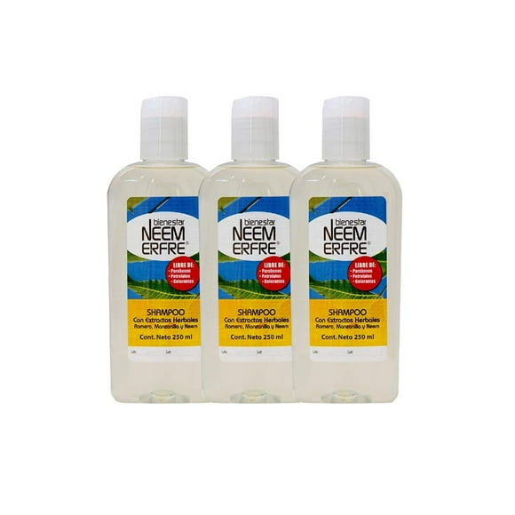 Shampoo romero manzanilla Bienestar NEEM ERFRE 250 mlPaquete de 3 shampoo romero manzanilla Bienestar NEEM ERFRE 250 ml c/pack