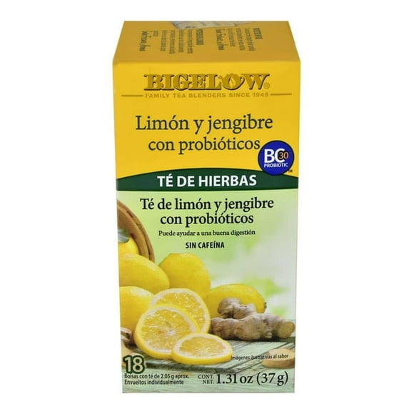 Té Bigelow limón y jengibre con probióticos 18 sobres 37 gTé Bigelow verde con jengibre y probióticos 18 sobres 25 g