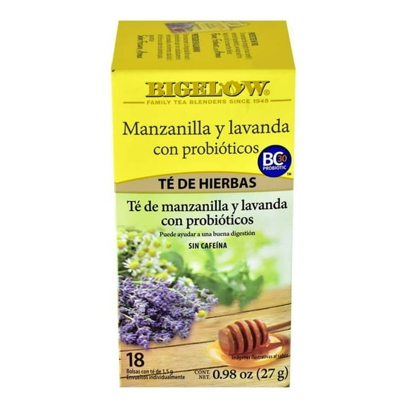 Té Bigelow manzanilla y lavanda con probióticos 18 sobres 27 gTé Bigelow limón y jengibre con probióticos 18 sobres 37 g
