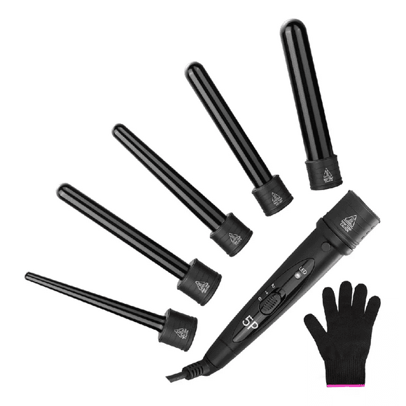 Juego De Rizadora De Cabello Bloosom 6 En 1 De Cerámica Negro.