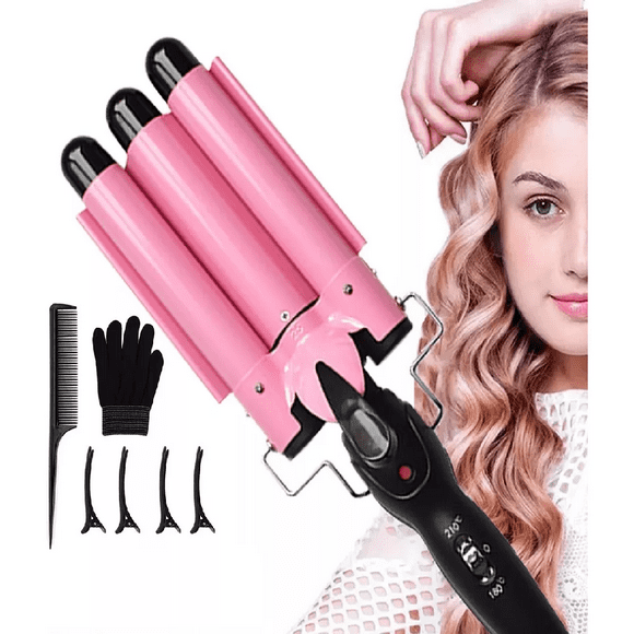 Rizadora De Cabello,varita De Rizador De 3 Barriles Rosa