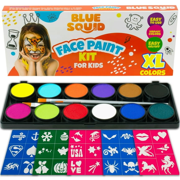 Kit de pintura facial Blue Squid completo con plantillas de 12 coloresKit de pintura facial Blue Squid, juego de plantillas para niños de 18 colores