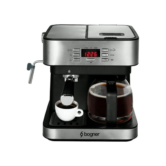 Cafetera Espresso + Goteo Bogner 20 Bares 12 Tazas Acero Inox