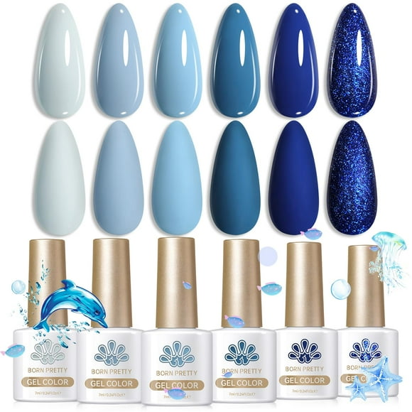 Esmalte de uñas en gel Born Pretty Blue, juego de 6 colores con purpurinaAvailable for Envío internacionalEnvío internacional
