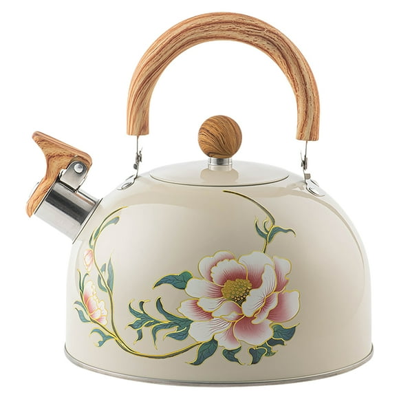 BRIGHTFUFU Tetera con silbido, tetera, hervidor de agua, tetera de cocina, tetera con patrón de flores, tetera para estufaBRIGHTFUFU Potilla de sonido automático de cocina de acero inoxidable para olas de sonido automático para el horno de inducción de cocción de inducción de gas (4L)