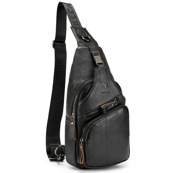 Pecho Pack Bolso bandolera de cuero genuino para hombre, bandolera informal en el pecho, senderismo, BULLCAPTAIN Pecho Pack