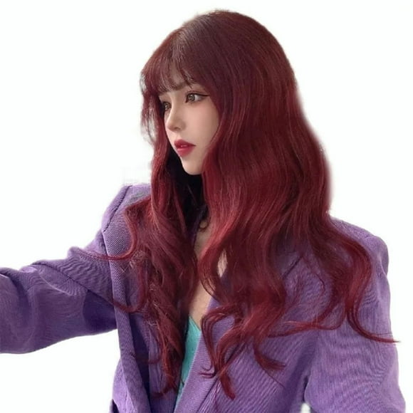 Peluca rizada ondulada larga roja vino, Flequillo largo y rizado rojo vino Peluca ondulada larga Flequillo de aire Peluca rizada Funcionalidad versátilAplicador de tinte de color BuyWeekMX 4 piezas cepillo para teñir el cabello