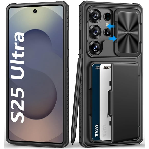 Funda de teléfono BXYJY para Samsung Galaxy S25 Wallet RFID negraBXYJY - Funda tipo portafolios para iPhone 16 Pro con soporte para tarjetas de crédito (4-5 tarjetas), protección de grado militar, cubierta de cámara deslizante, resi