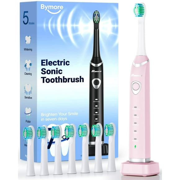 Cepillo de dientes eléctrico Bymore para adultos con 8 cabezales de repuesto