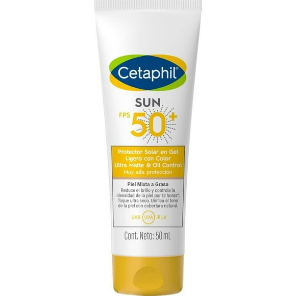 Protector solar Cetaphil sun fps 50+ en gel ligero con color para piel mixta a grasa ultra matte y oil control 50ml